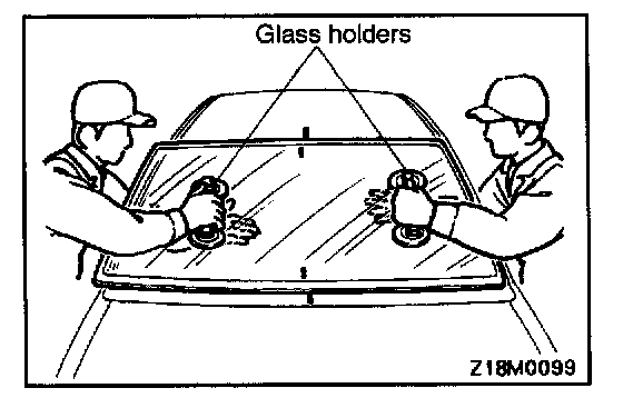 1. To protect the body (paint surface), apply cloth tape to all body areas around the installed windshield glass.