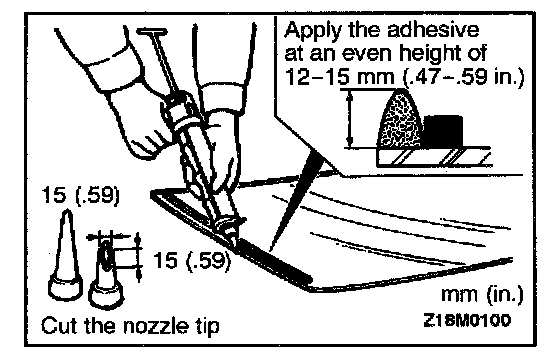 NOTE: Cut the nozzle tip of the sealant gun into a V shape to facilitate adhesive application.