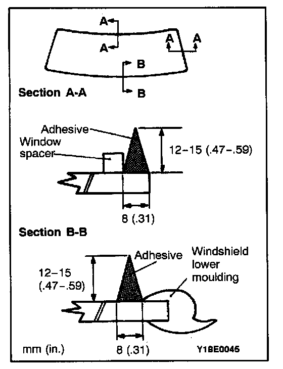 >B< WINDSHIELD GLASS/WINDSHIELD LOWER MOULDING INSTALLATION