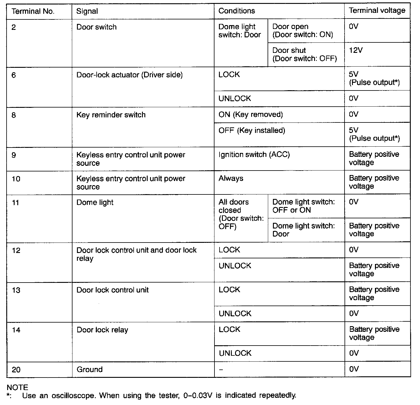 KEYLESS ENTRY CONTROL UNIT INSPECTION