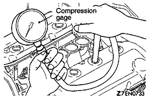 7. Crank the engine with the throttle valve fully open and measure the compression pressure.