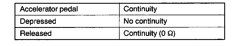 NOTE: If there is no continuity when the accelerator pedal is released, loosen the throttle position sensor installation screw; then, after turning all the way in the clockwise direction, check again.