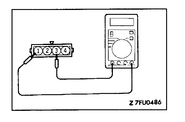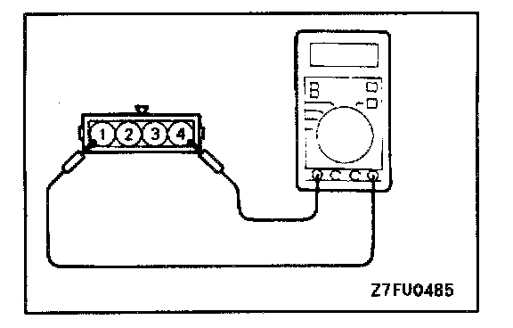 2. Measure the resistance between terminal (1) (sensor ground) and terminal (4) (sensor power).