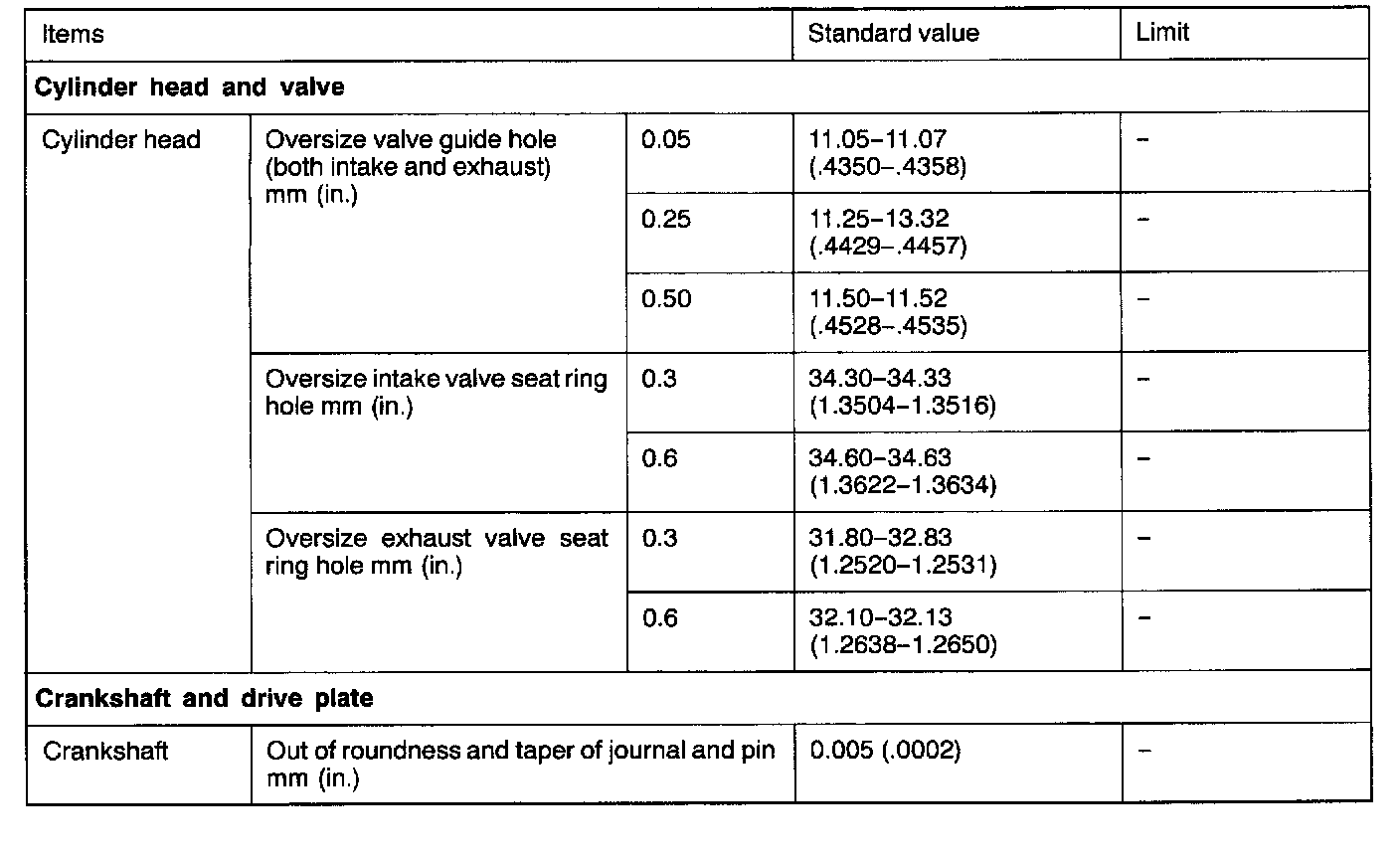 Engine-Overhaul Specifications