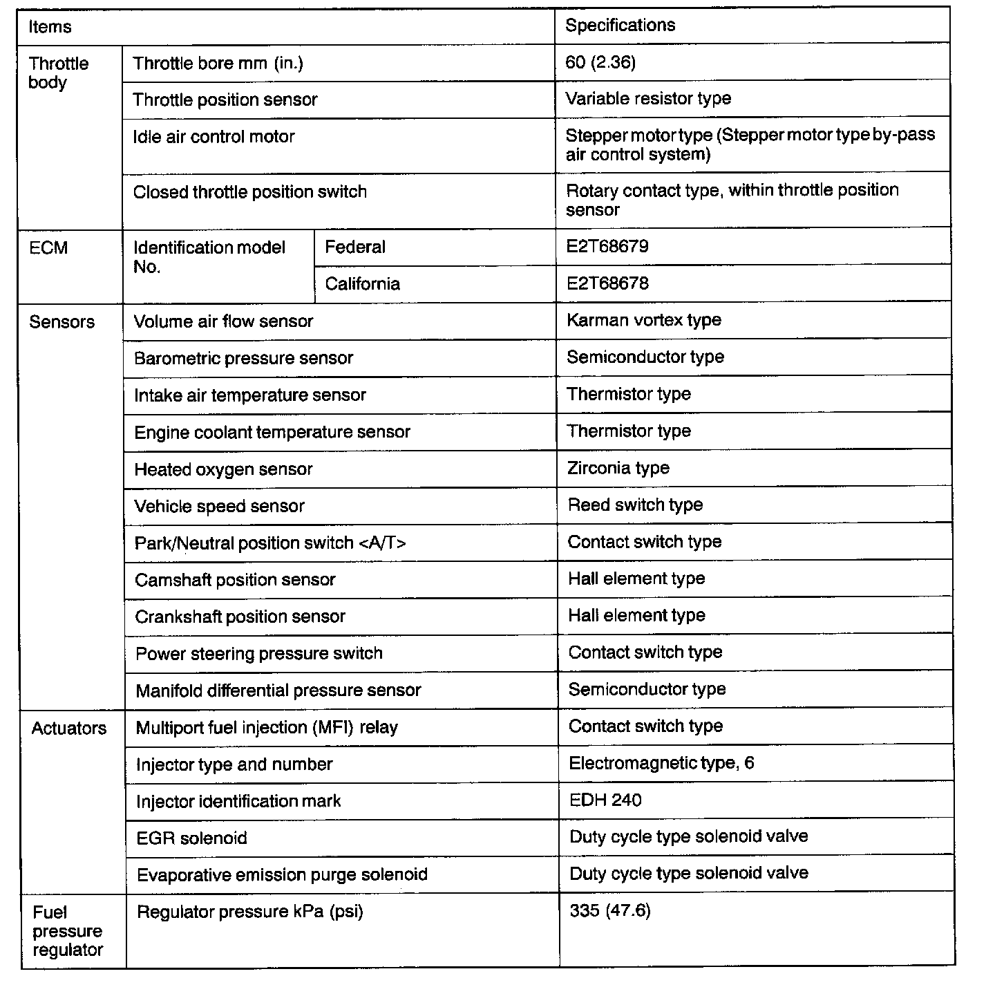 GENERAL SPECIFICATIONS: