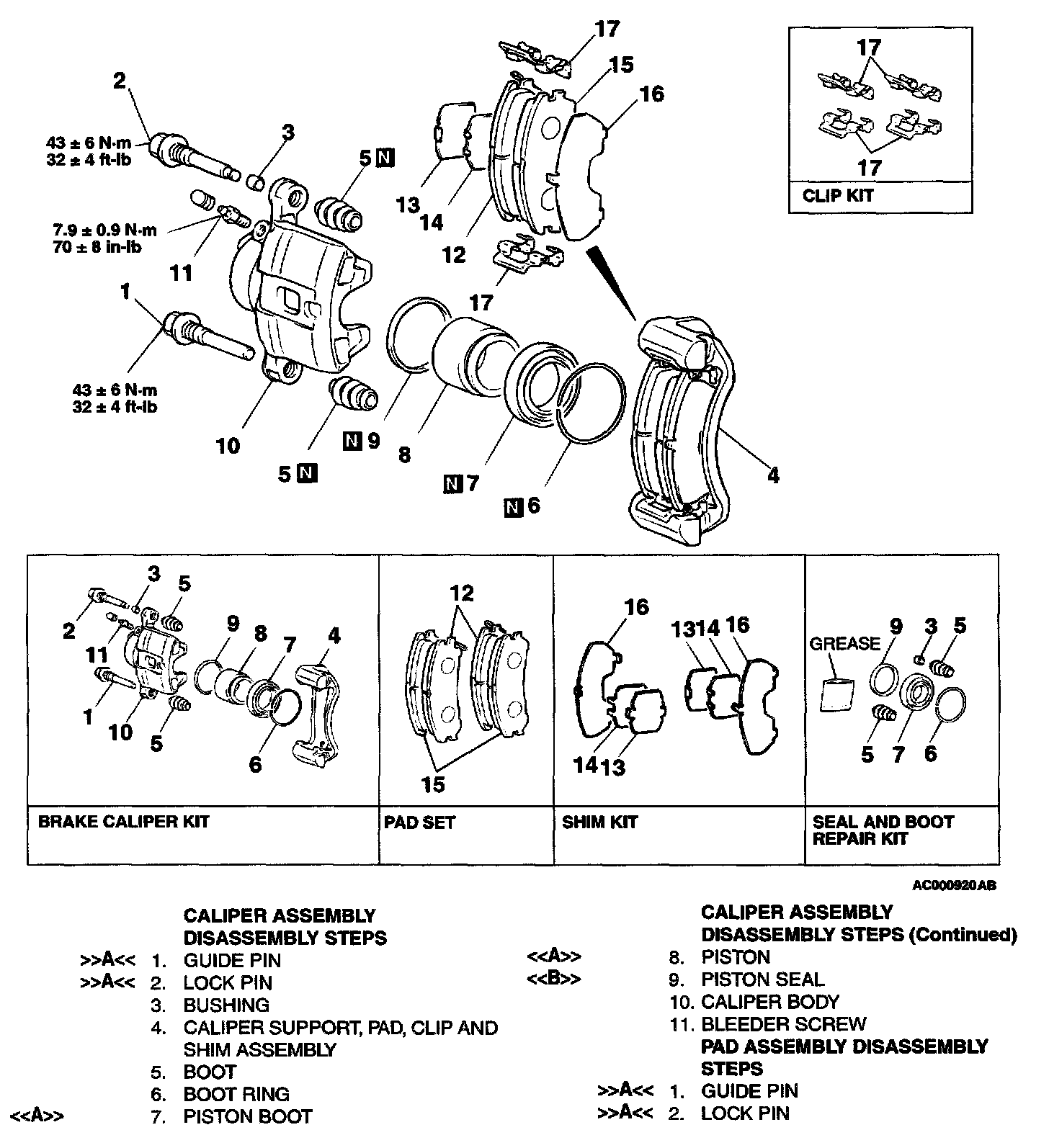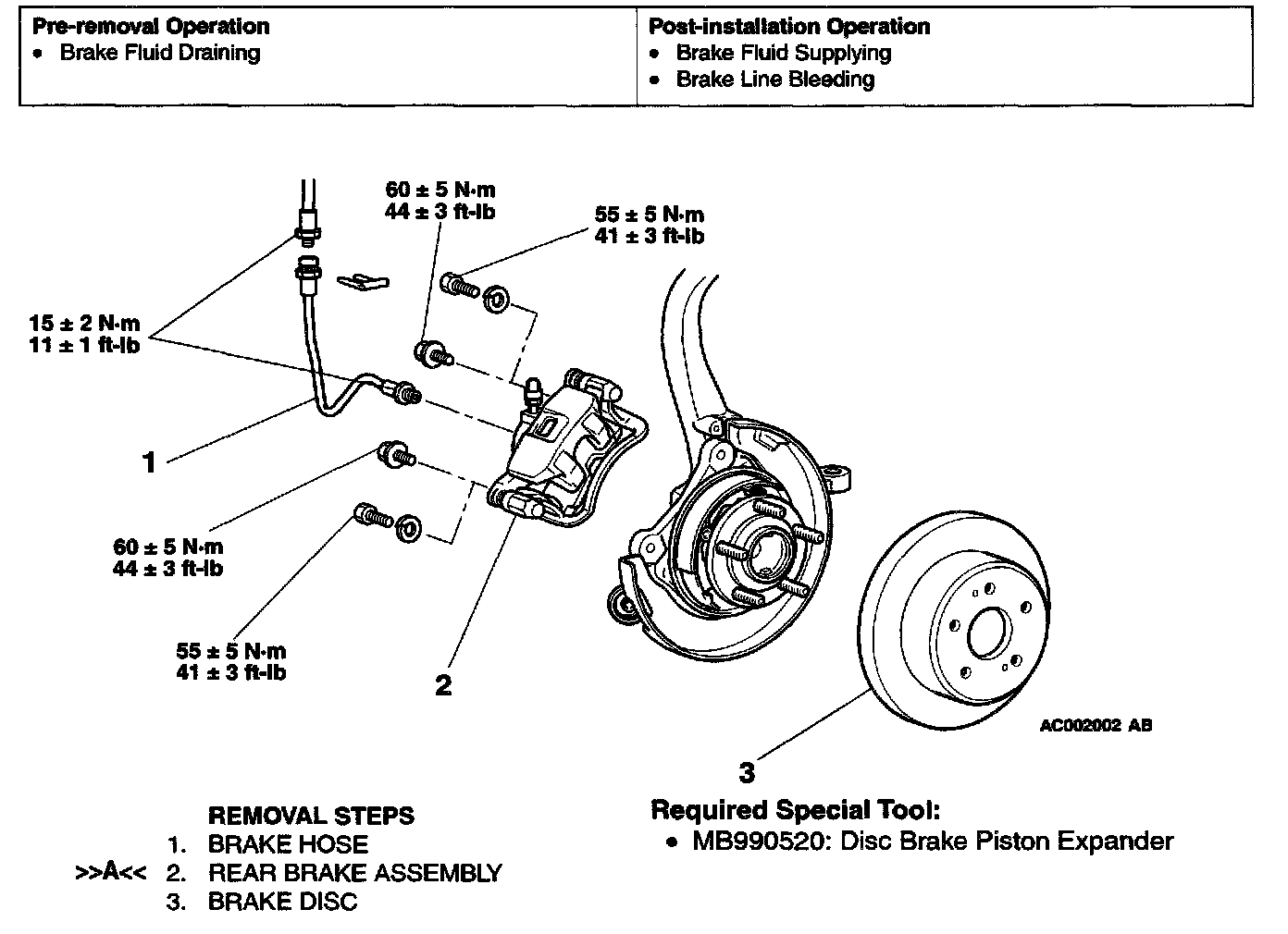 REAR DISC BRAKE ASSEMBLY REPLACEMENT AND OVERHAUL W/ RELATED COMPONENTS