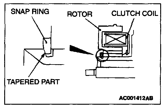 When installing the clutch coil to the A/C compressor body, install so that the pin hole of the A/C compressor body and the clutch coil projection are aligned.