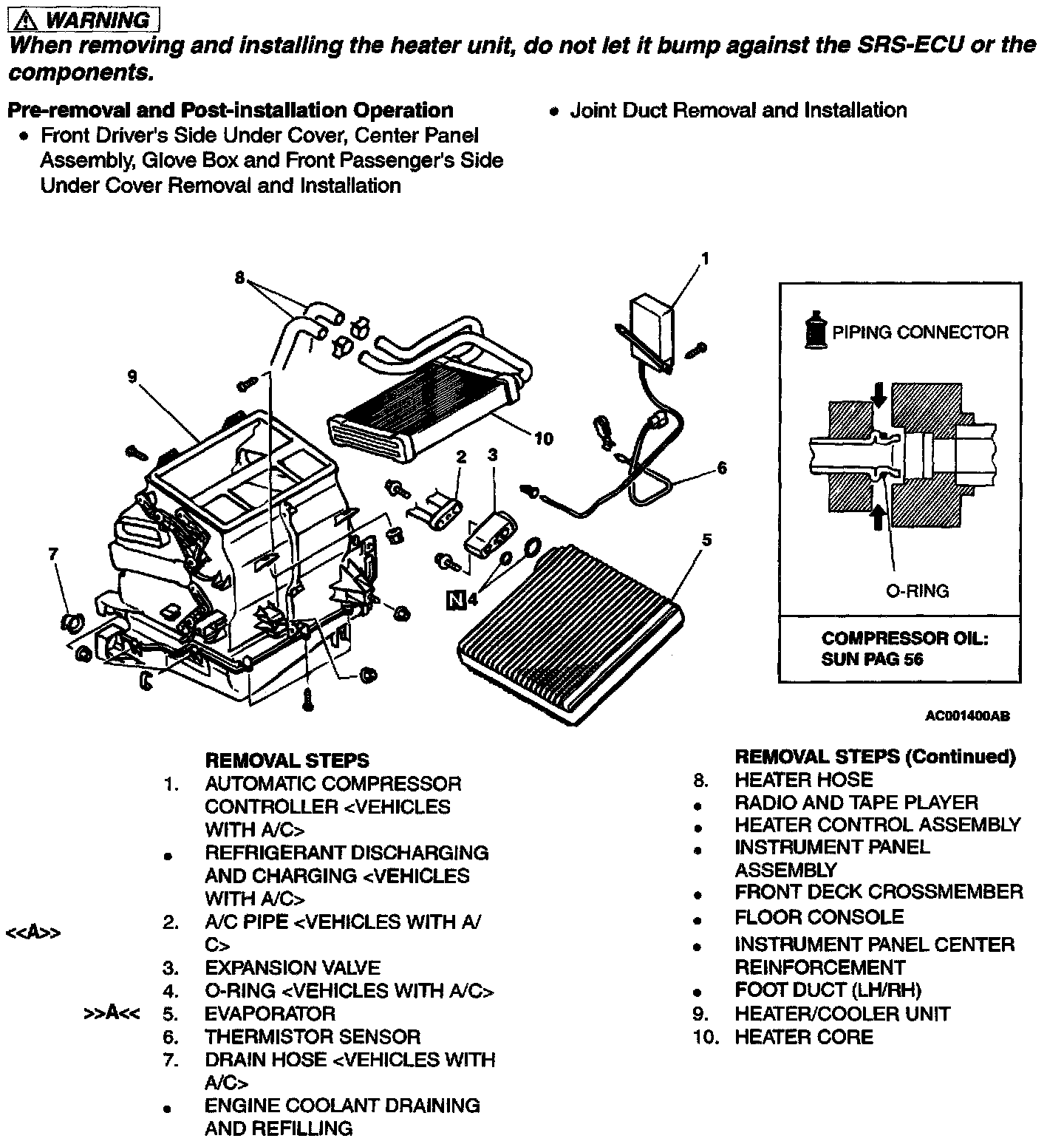 CAUTION: Seal the pipes completely, otherwise the compressor oil and receiver will absorb water vapor easily, possibly damaging the compressor and deteriorating performance. Plug the disconnected pipe and the evaporator nipple to prevent foreign material from gelling into them.