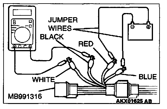 1. Use scan tool MB991502, observe HO2S reading. If values are unsatisfactory, or if the scan tool is not available, use the following procedure: