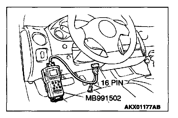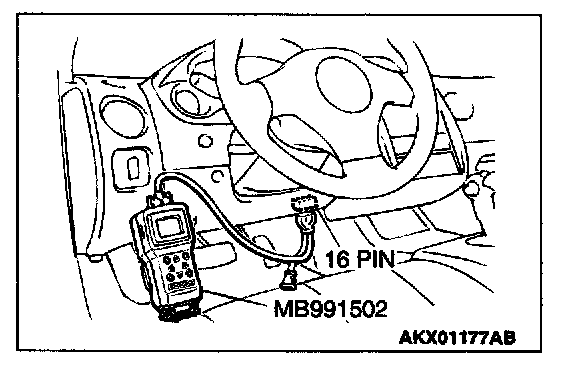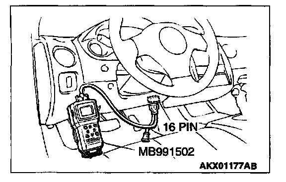 CAUTION: To prevent damage to scan tool MB991502, always turn the ignition switch to the "LOCK" (OFF) position before connecting or disconnecting scan tool MB991502.