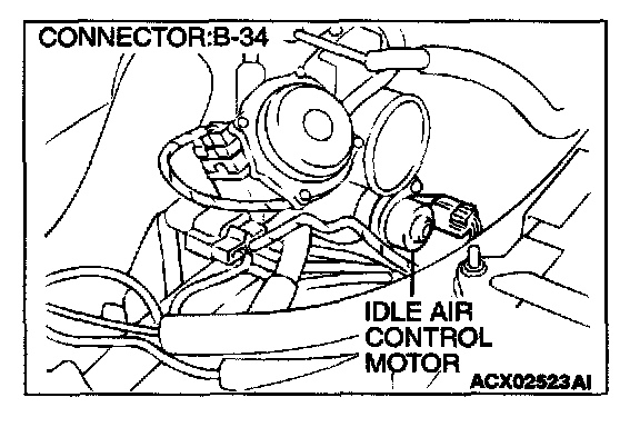 2. Check the operation sound of the IAC motor can be heard after the ignition is switched to the "ON" position (but without starting the engine).