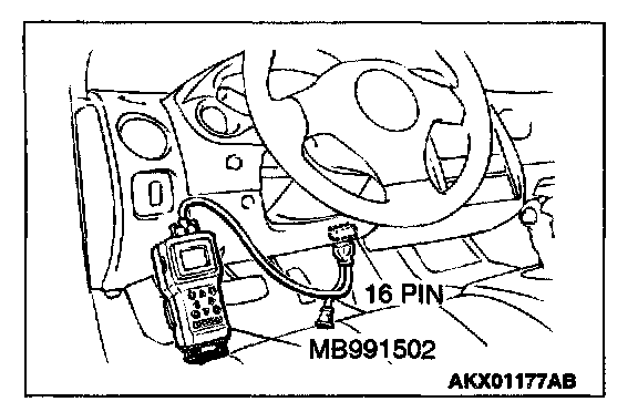 1. Connect scan tool MB991502 to the data link connector.