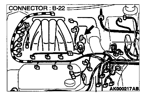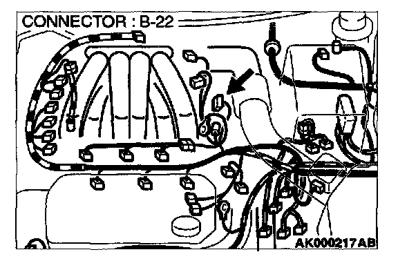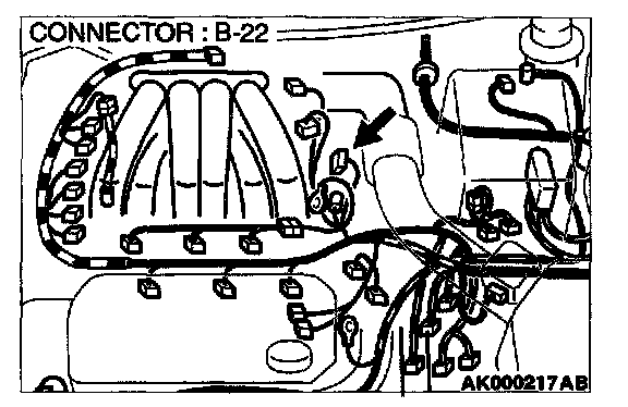 STEP 1. Check connector B-22 at distributor for damage.