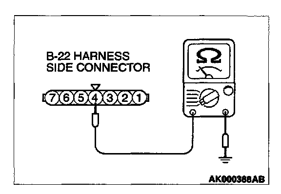 1. Disconnect the connector B-22 and measure at the harness side.