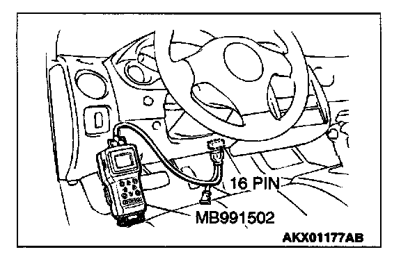 1. Connect scan tool MB991502 to the data link connector.