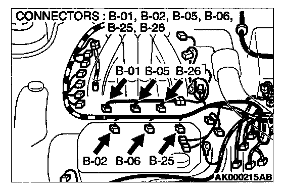 STEP 9. Check connector B-01 or B-05 or B-26 at right bank injector for damage.