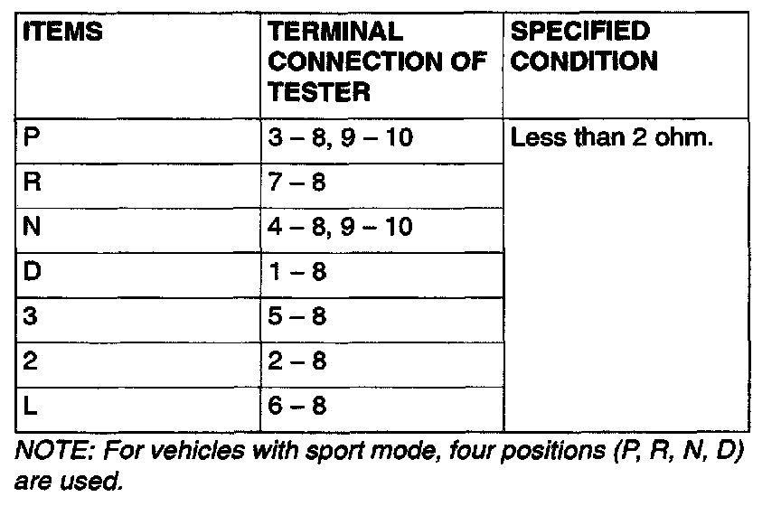 PARK/NEUTRAL POSITION SWITCH CONTINUITY CHECK