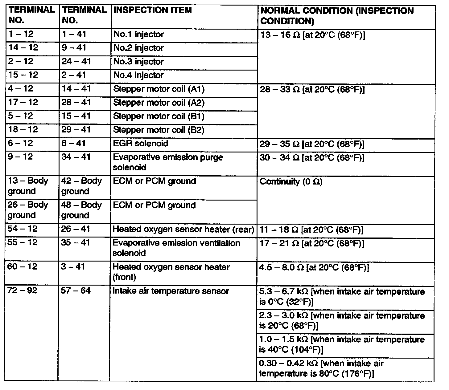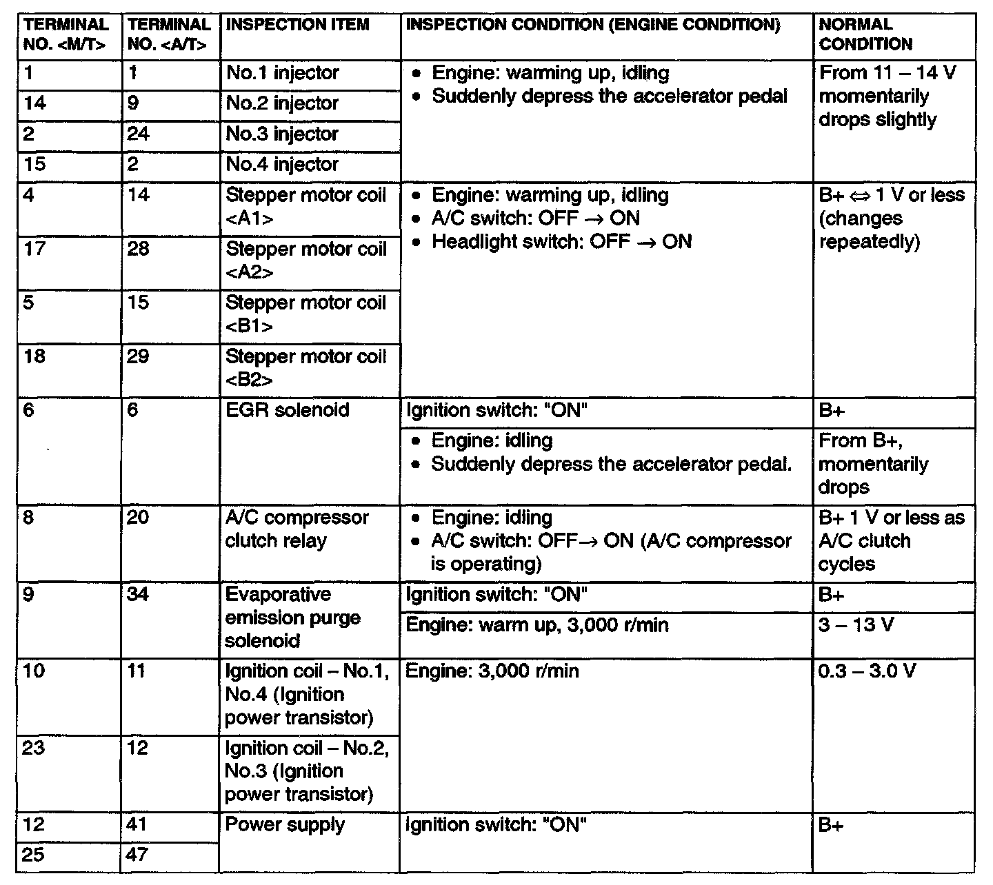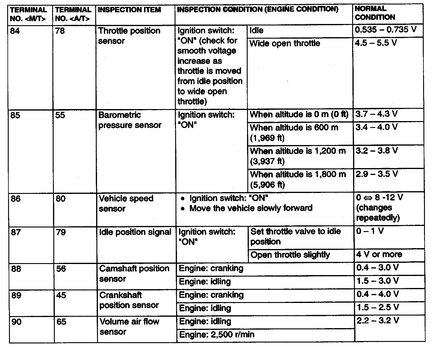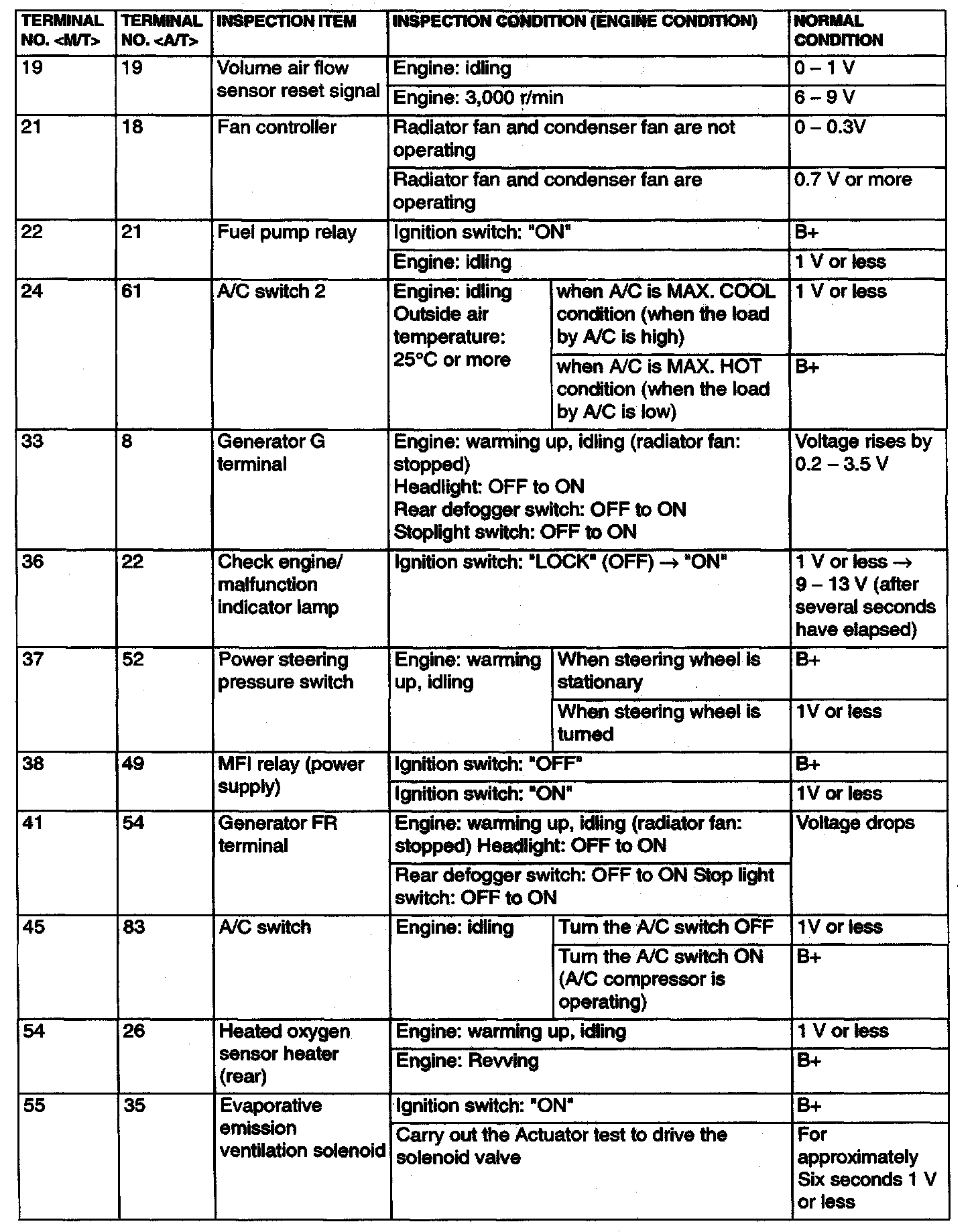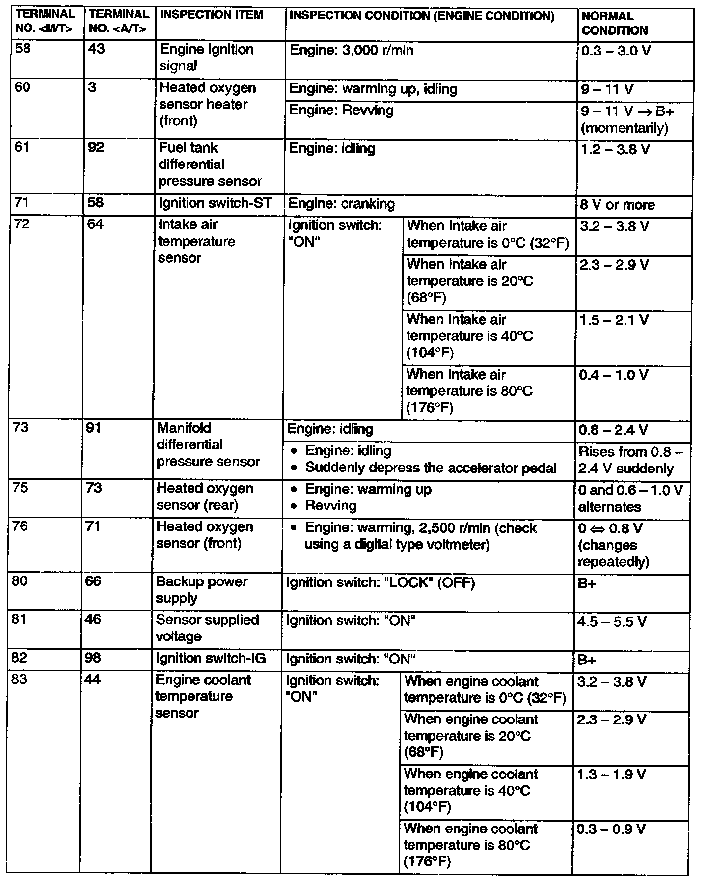 Terminal Voltage Check Chart Part 1: