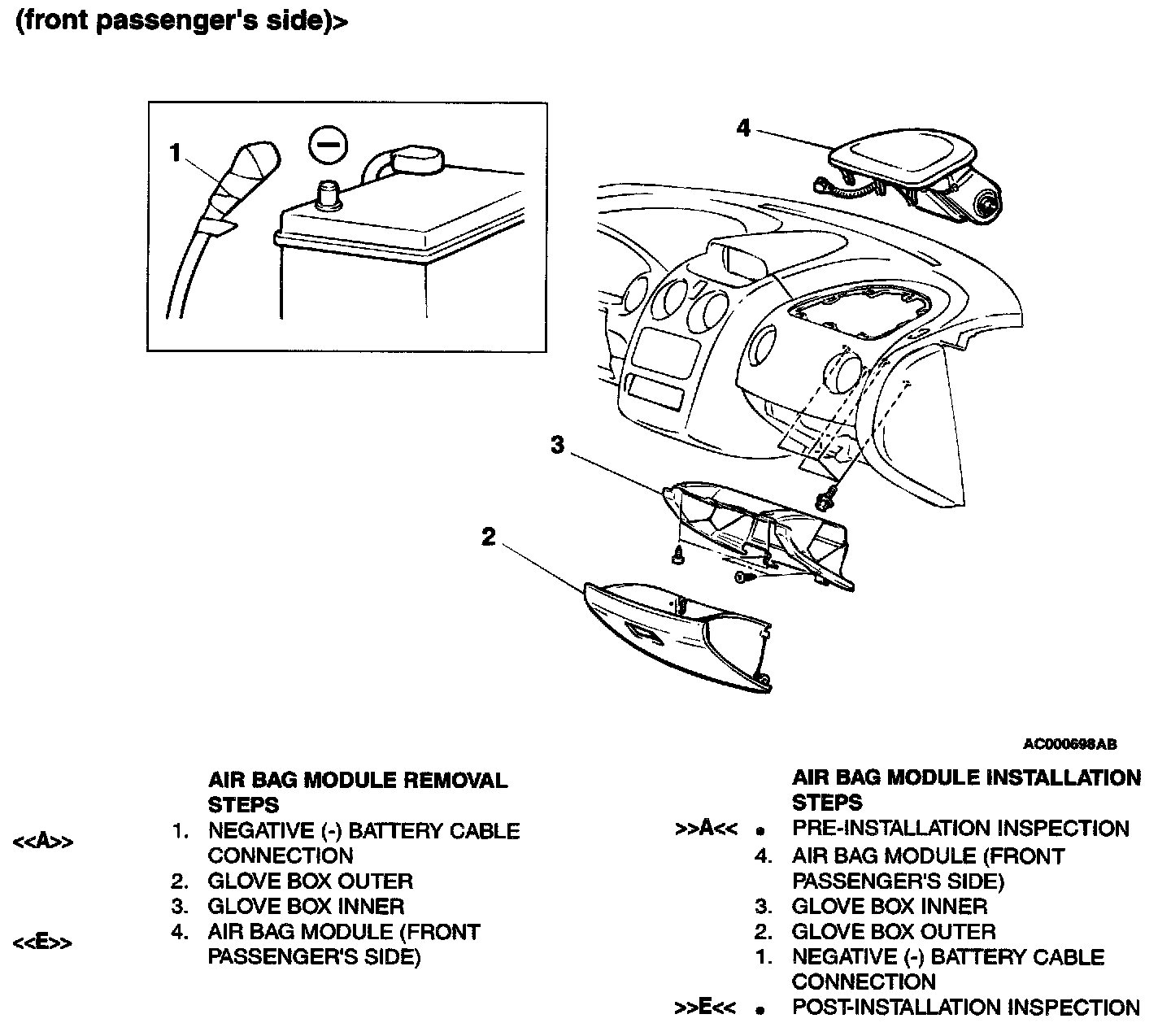 [E] AIR BAG MODULE REMOVAL (FRONT PASSENGER'S SIDE)