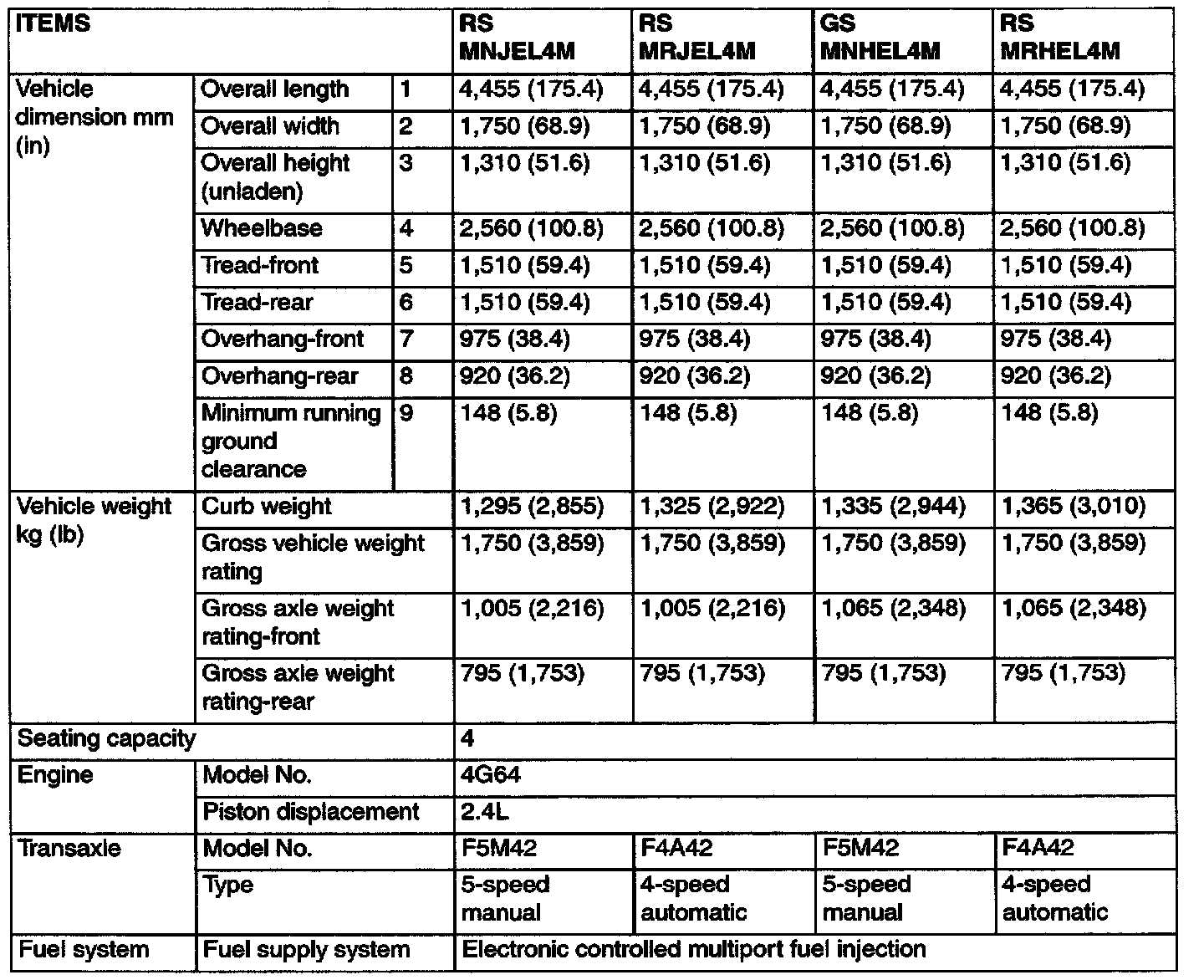 Eclipse RS L4-2350cc 2.4L SOHC MFI