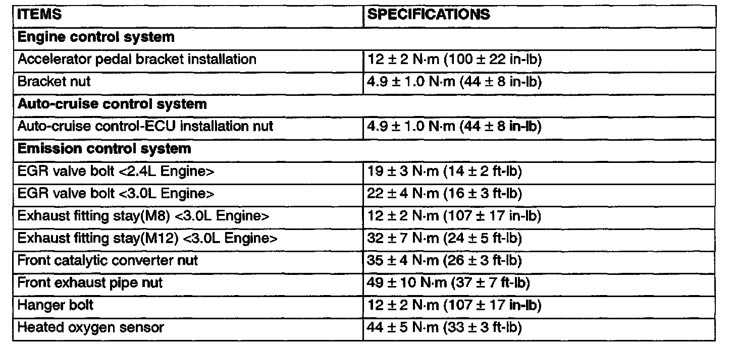 Fastener Tightnening Specifications: