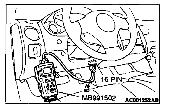 CAUTION: To prevent damage to scan tool MB991502, always turn the Ignition switch to "LOCK" (OFF) position before connecting or disconnecting scan tool MB991502.