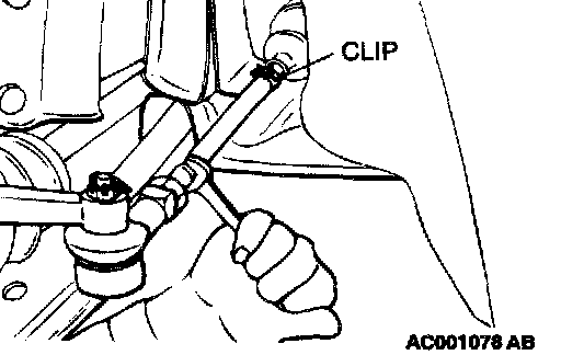 - If the toe-in is not within the standard value, adjust the toe-in by undoing the clips and turning the left and right tie rod turnbuckles by the same amount (in opposite directions).