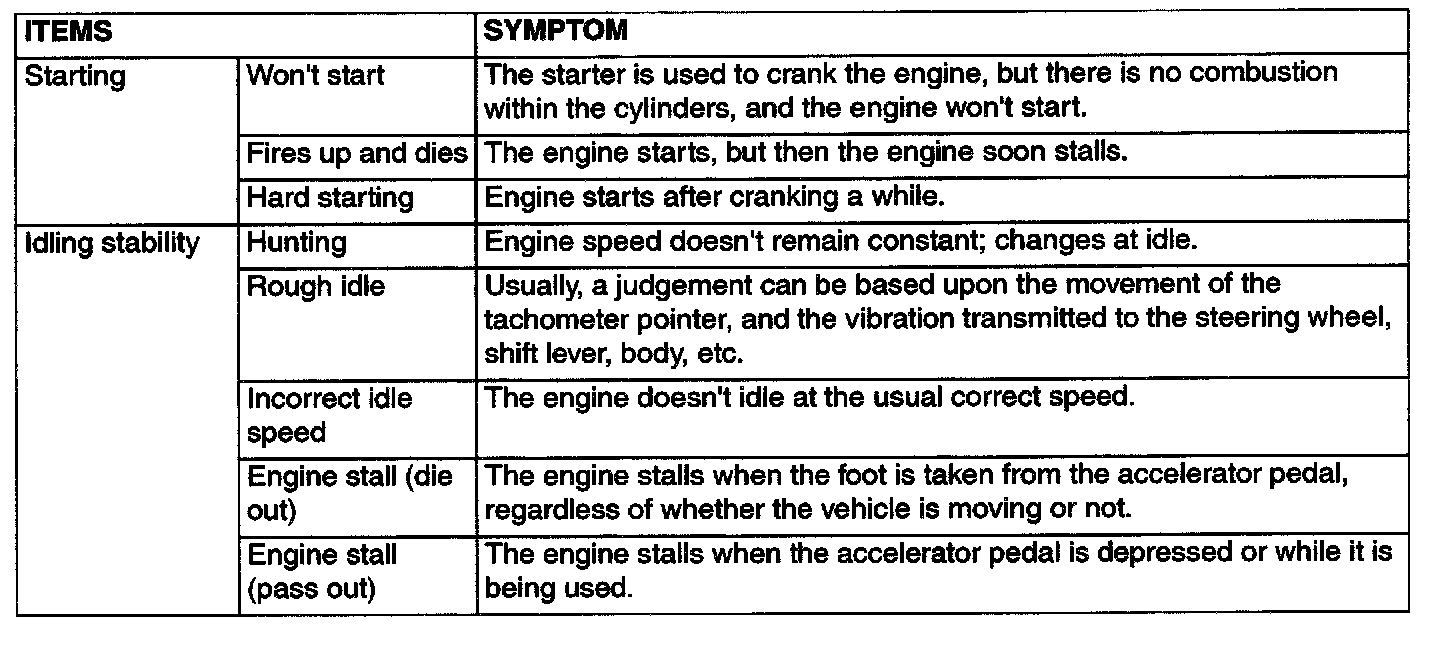 Problem Symptoms Table Part 1: