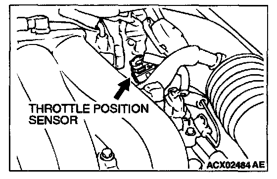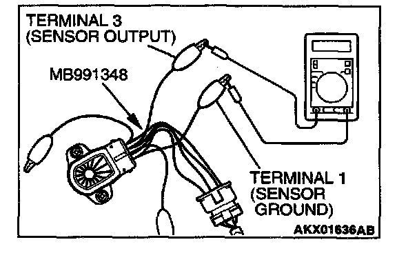 1. Disconnect the throttle position sensor connector, and connector special tool MB991348 in between. (All terminals should be connected.)