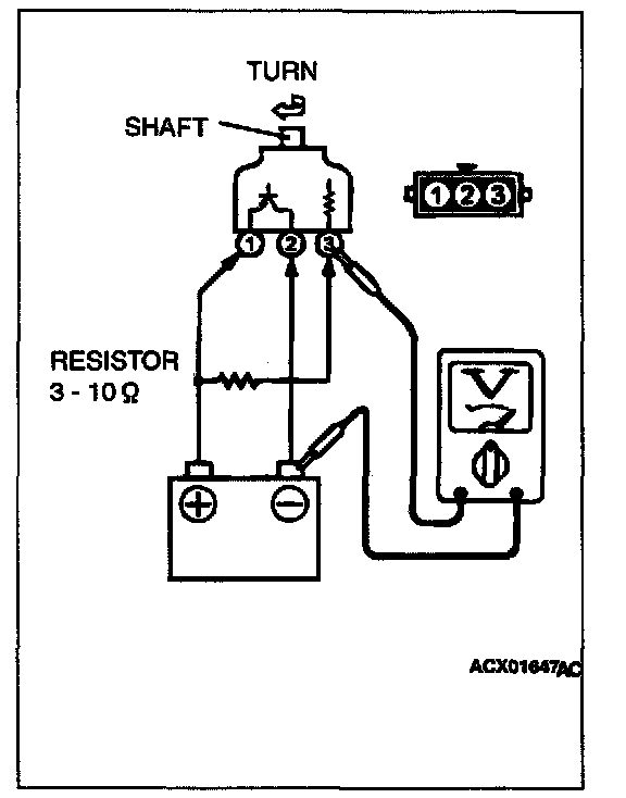 2. Turn the shaft of the vehicle speed sensor and check that there is voltage between terminals 2 - 3. (1 turn 4 pulses)