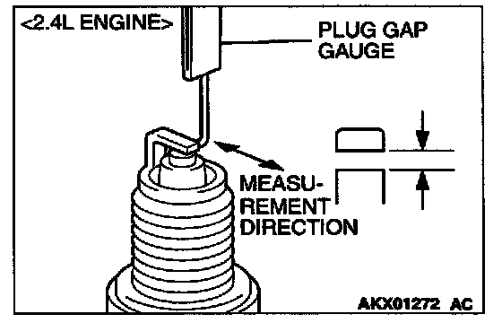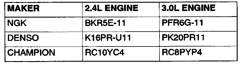SPARK PLUGS (REPLACE)CAUTION: Platinum plugs are used on 3.0L engine. Use care not to damage the platinum tips of the platinum plugs. Do not attempt to adjust the gap on these plugs.