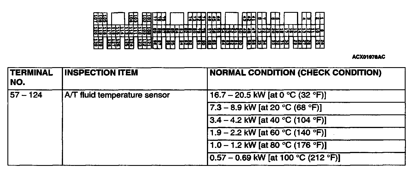 PCM TERMINAL RESISTANCE AND CONTINUITY INSPECTION CHART