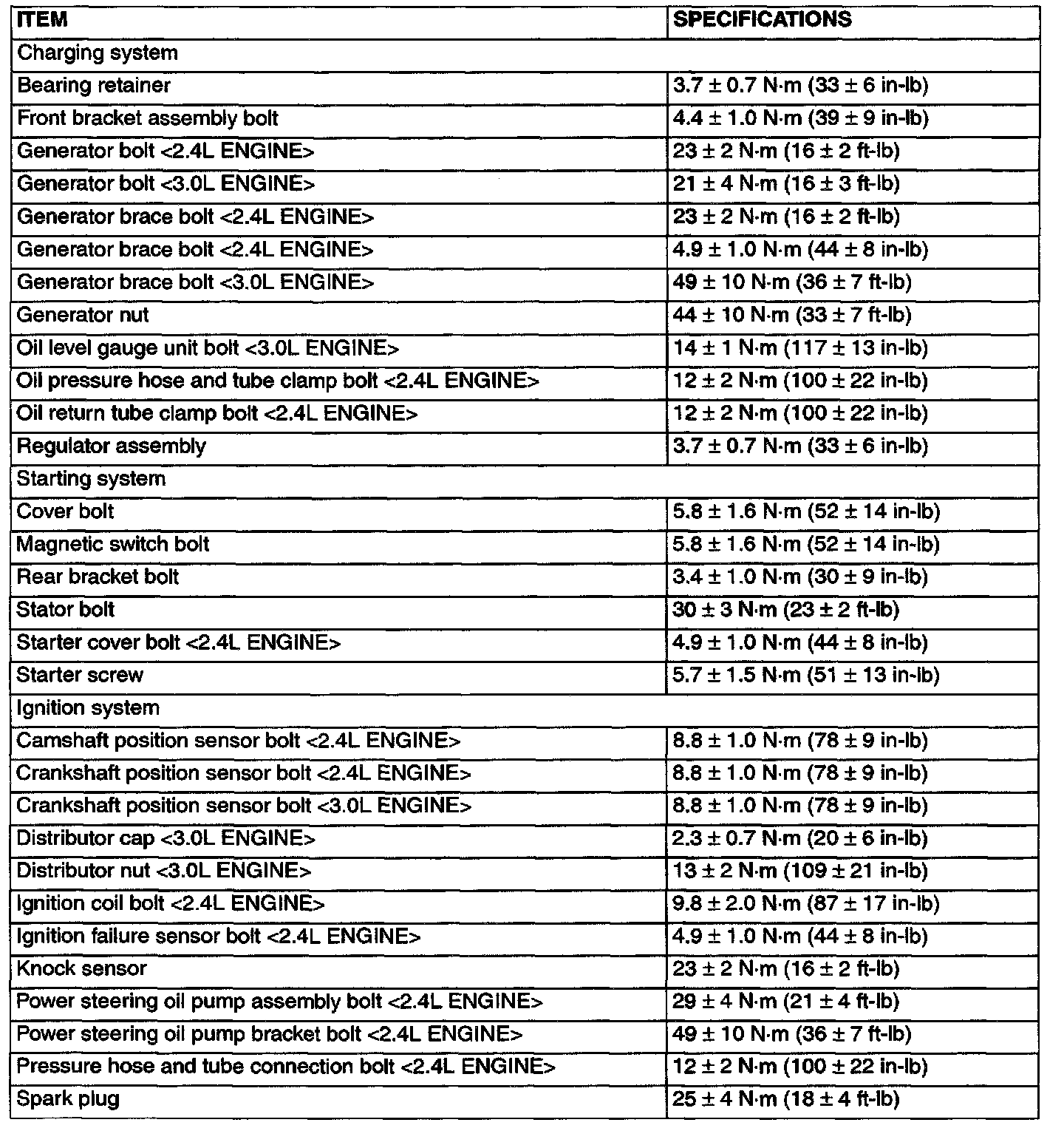 Fastener Tightening Specifications: