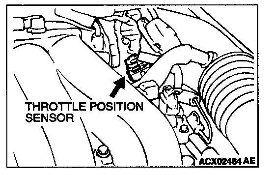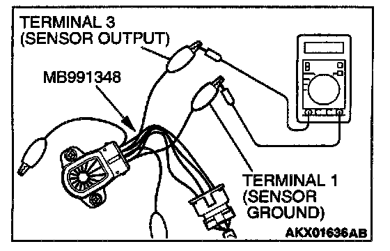 1. Disconnect the throttle position sensor connector, and connector special tool MB991348 in between. (All terminals should be connected.)