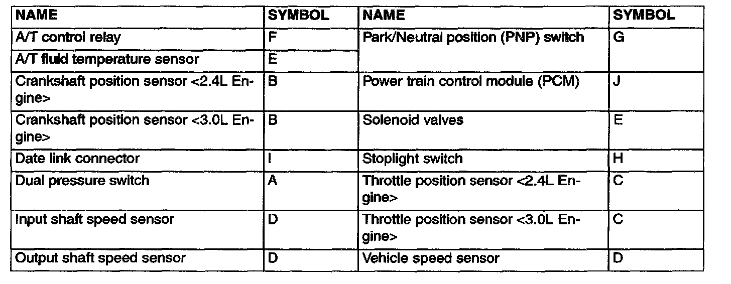 A/T CONTROL COMPONENT LAYOUT