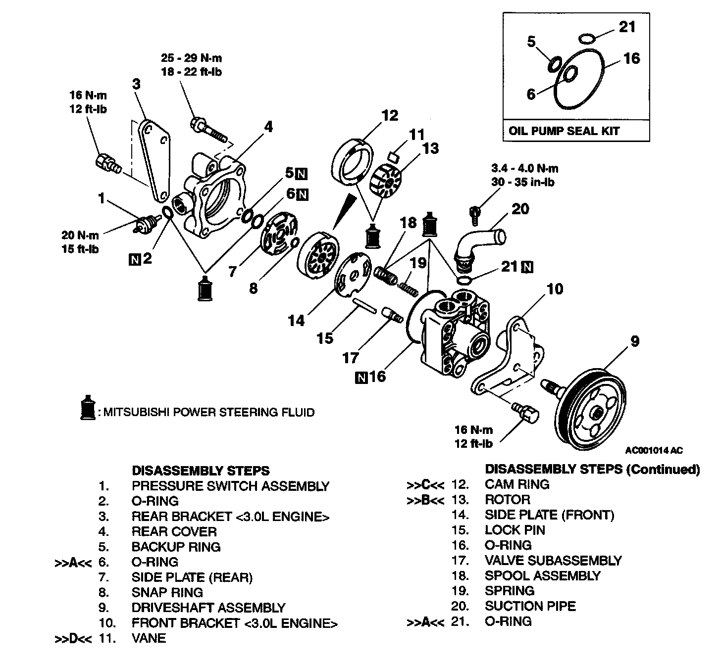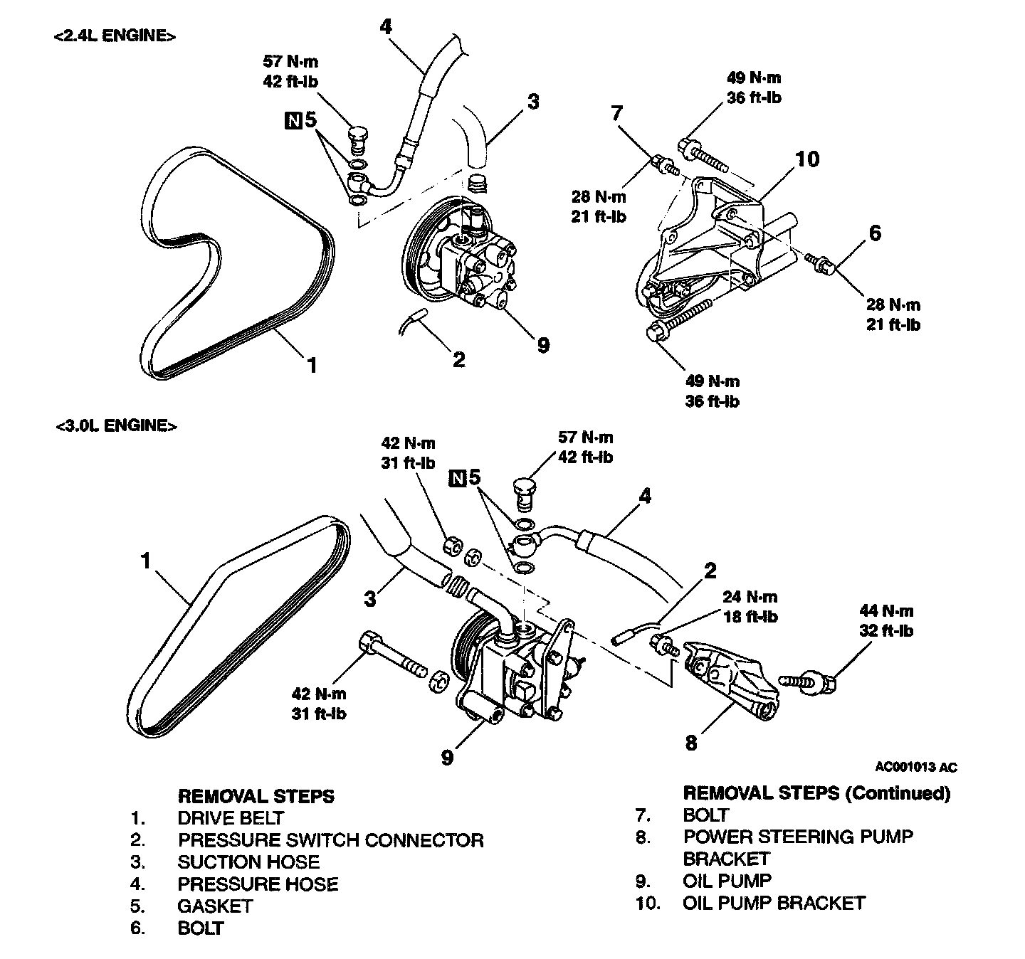 POWER STEERING OIL PUMP ASSEMBLY REPLACEMENT AND OVERHAUL W/ RELATED COMPONENTS