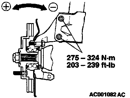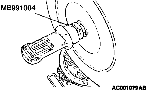 NOTE: For vehicles with aluminum type wheels, attach the camber/caster/kingpin gauge to the driveshaft by using special tool MB991004. Tighten special tool MB991004 to the same torque 196 - 255 Nm (145 - 198 ft. lbs.) as the driveshaft nut.
