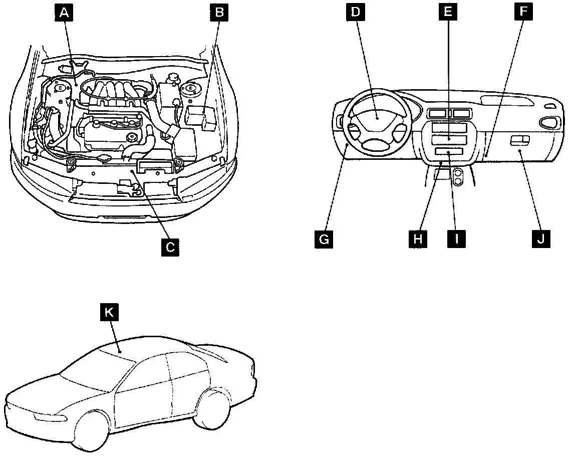 To remove the Powertrain Control Module (Item "J") disconnect the battery, remove the glove compartment, then disconnect and remove the PCM.