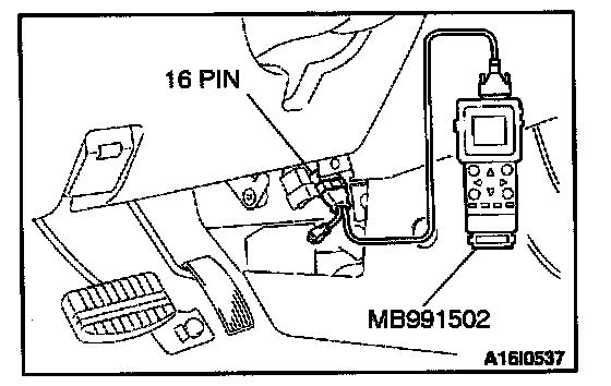 1. Connect scan tool MB991502 to the data link connector (16- pin).