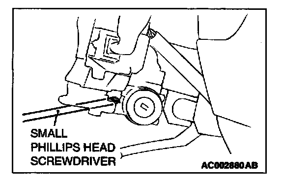 2. Using a small Phillips head screwdriver, pull the steering lock cylinder toward you.