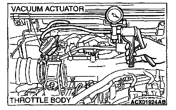 2. Check that the throttle lever operates when applying vacuum, and the vacuum is maintained.