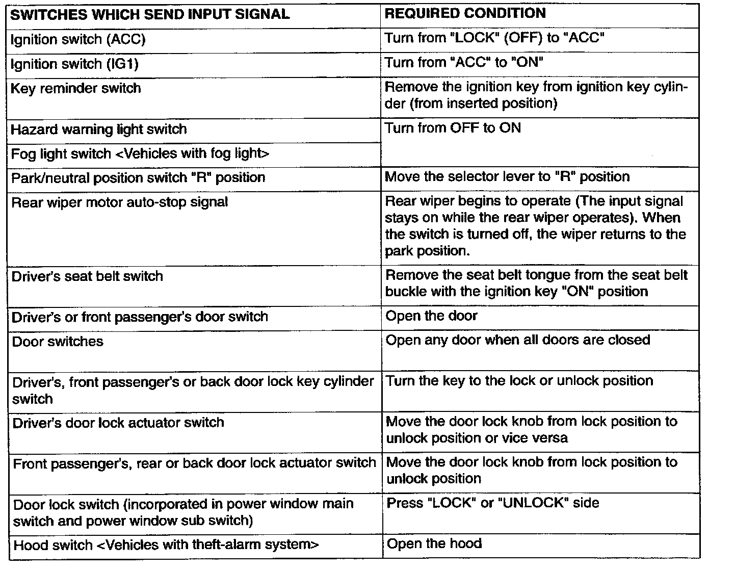 This mode checks the switch input signals to each ECU incorporated in the SWS. If a defect is found at this check, carry out the troubleshooting by referring to Symptom Chart.