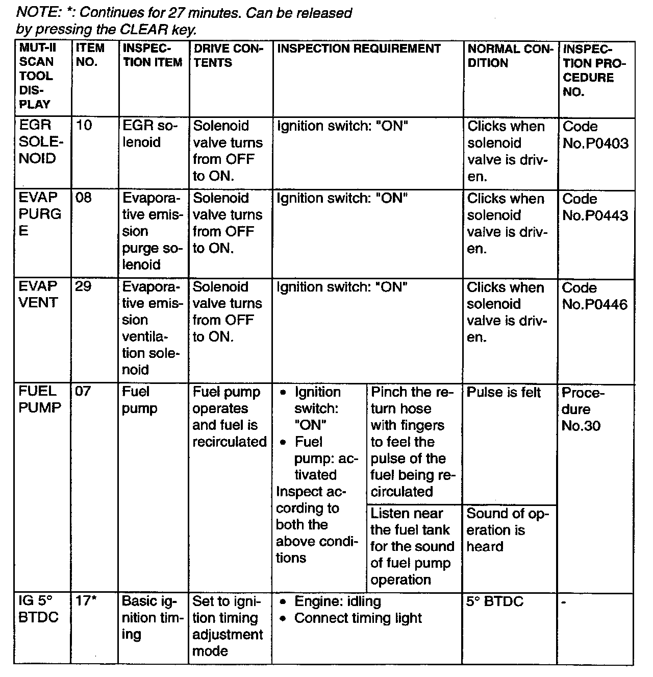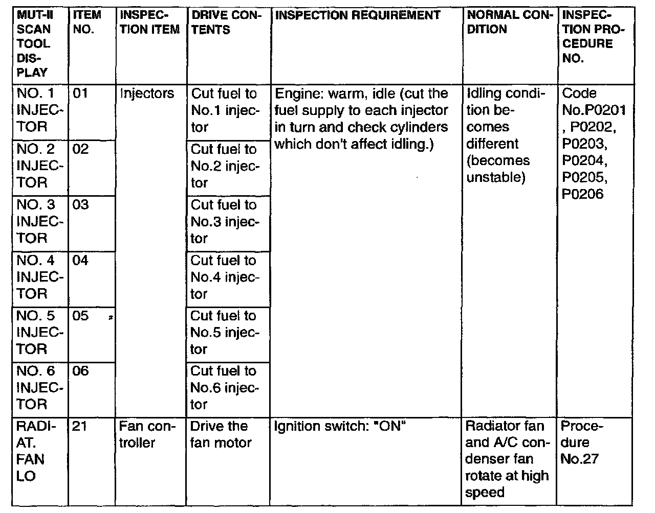 Actuator Test Reference Table Part 2: