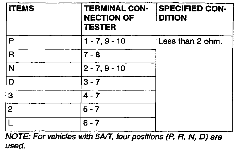 PARK/NEUTRAL POSITION SWITCH CONTINUITY CHECK