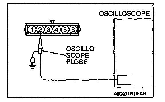 1. Connect the oscilloscope probe to PCM terminal 11. (When checking the number 1 and 4 cylinders.)
