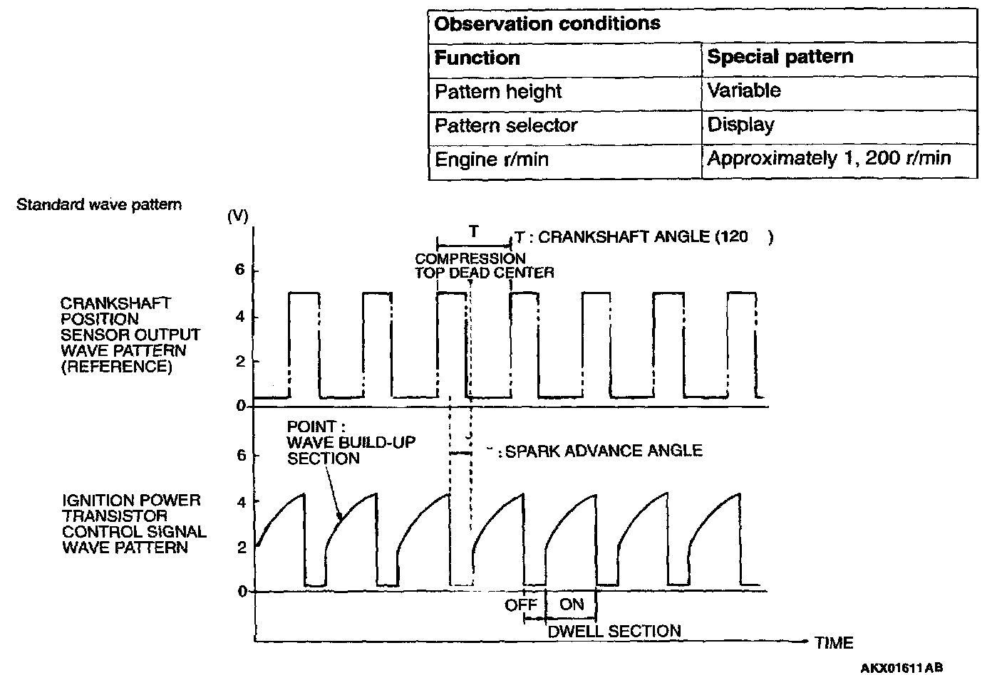 Point: Condition of wave pattern build-up section and maximum voltage (Refer to abnormal wave pattern examples 1 and 2.)