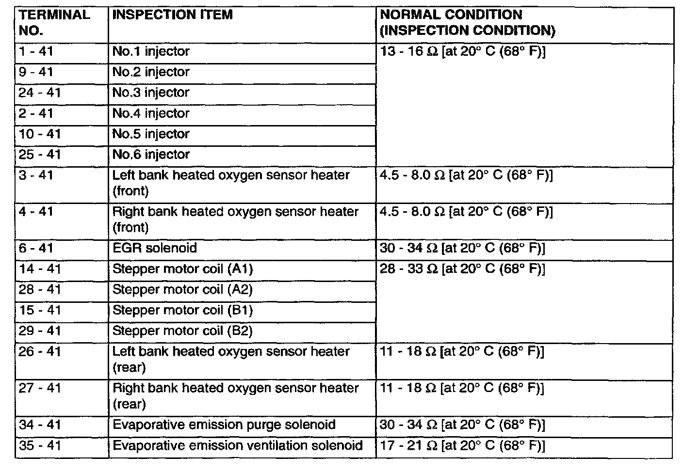 Terminal Resistance And Continuity Check Chart - Part 2: