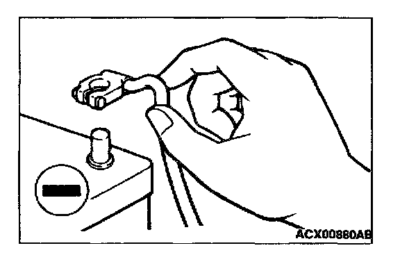 - Before connecting or disconnecting the negative battery cable, be sure to turn off the ignition switch and the lights. (If this is not done, there is the possibility of semiconductor parts being damaged.)