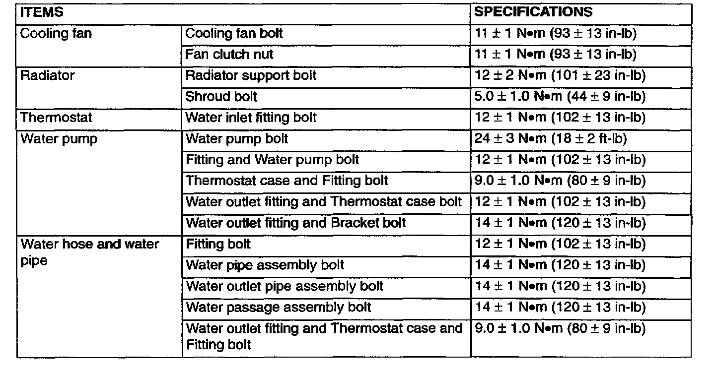 Tightening Specifications