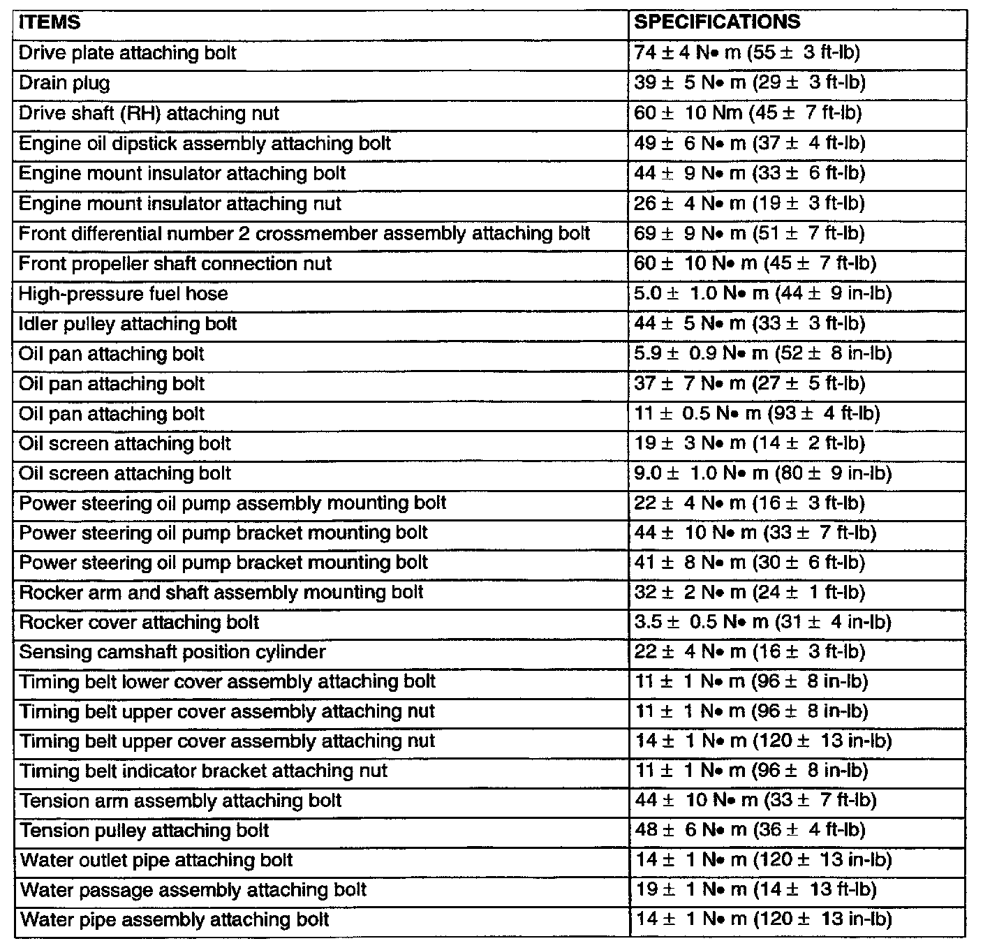 FASTENER TIGHTENING SPECIFICATIONS